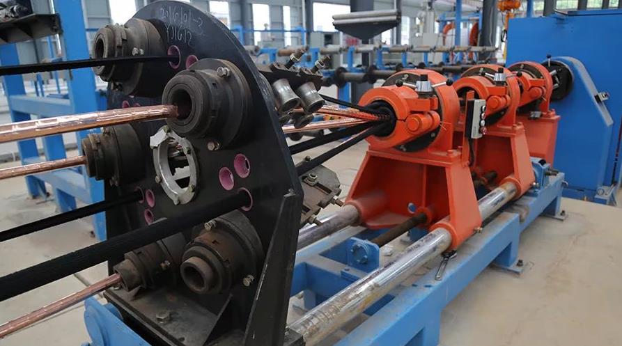 電線電纜常用的銅、鋁桿材,在常溫下,利用拉絲機通過一道或數道拉伸模具的模孔,使其截面減小、長度增加、強度提高。拉絲是各電線電纜公司的首道工序。